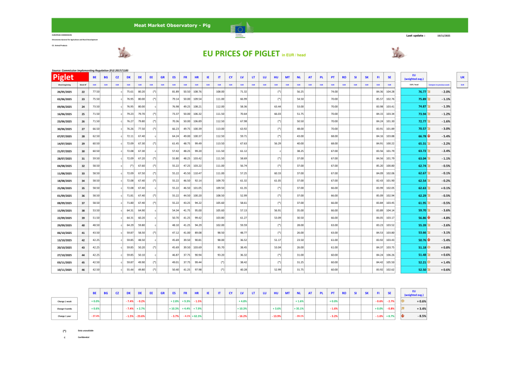 PDF: Weekly price report on Pig carcass and Piglet prices in the EU