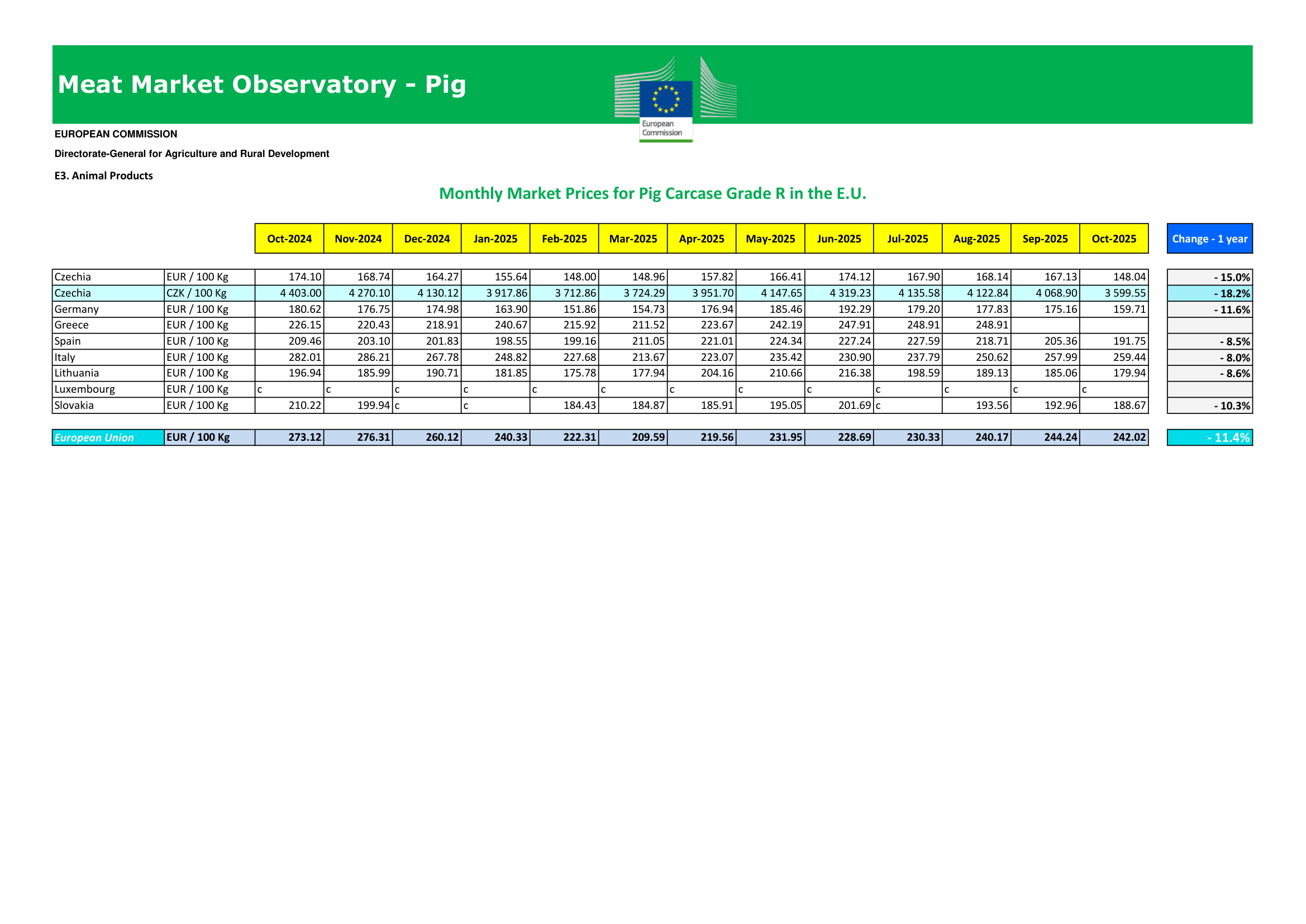 Evropska komisija – Meat Market Observatory (19.11.2025)