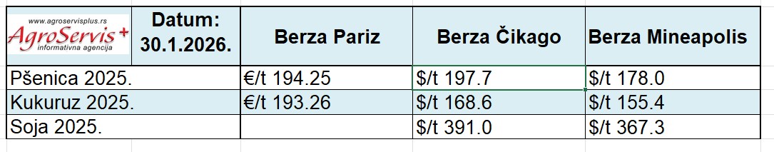 Pšenica zadržava uzlazni trend zahvaljujući snažnim izvoznim signalima i smanjenoj globalnoj ponudi. Iako su cene kukuruza i soje blago oslabile početkom petka usled zatvaranja pozicija, pšenica (CBOT) se trguje oko 5,43 $/bu, poduprta podacima o novembarskom izvozu koji je bio na petogodišnjem maksimumu. Dodatnu podršku pružaju revizije Evropske komisije koje smanjuju izvoznu dostupnost pšenice iz EU, kao i kontinuirani vremenski rizici u američkim ravnicama, što drži kupce aktivnim uprkos velikim globalnim zalihama.