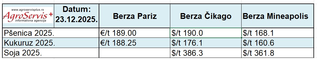 Rano trgovanje je mešovito: pšenicu i kukuruz podržavaju oštećenja luke Odesa i snažni američki izvozni podaci, dok soju sputava sve veća procena brazilske proizvodnje. Rizik novih poremećaja u Crnom moru dodaje kratkoročni premijum, naročito pšenici, a solidan tempo američkog izvoza drži tržište stabilnim pred praznike. Istovremeno, vremenski kontrasti u Južnoj Americi i jača „big Brazil“ priča ograničavaju rast soje, čineći je najneizvesnijom u ovom trenutku.