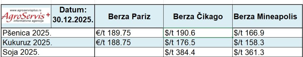 Rano trgovanje u utorak beleži blago jači ton na većini ugovora. Kukuruz i soja pokušavaju da se stabilizuju nakon jučerašnjeg pada, dok je pšenica mešovita po klasama. Tržišta trenutno balansiraju između vidljivosti tražnje, rizika vezanih za vremenske prilike u Južnoj Americi i smanjene likvidnosti karakteristične za kraj decembra.