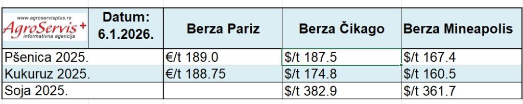 Pšenica: Mart ’26 CBOT pšenica zatvorila je na 5,10 1/2 USD, pad od 2 centa. Pšenica je oslabila jer se tržište oslanjalo na slabe nedeljne inspekcije i ton vođen konkurentnošću, iako izvozne obaveze idu ispred prošlogodišnjih, a vremenski rizici u delovima Plainsa ostaju faktor volatilnosti.