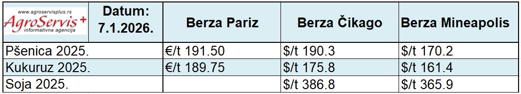 Pšenica: martovski ugovor za 2026. na CBOT-u zatvoren je na 5,18 USD/bu, uz rast od 7 1/2 centi. Pšenica je pratila kompleks naviše, uz podršku slabijih ocena stanja useva u Ravnicama i slike sušnih područja, dok su trgovci gledali i ka predstojećim izveštajima o izvozu, površinama pod ozimom pšenicom i povezanim rizicima.