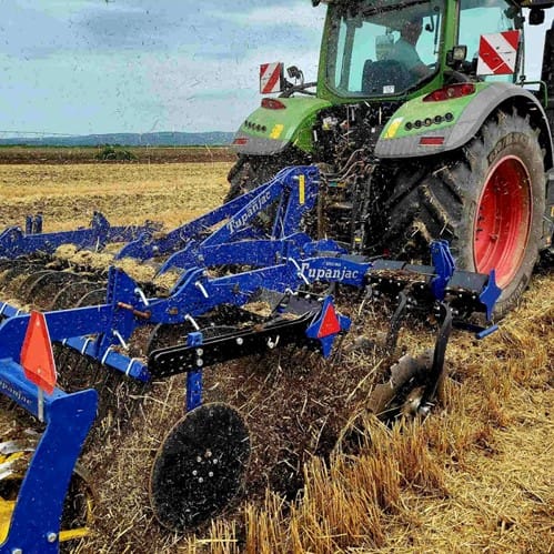 Prvi prolaz odmah posle žetve: tanjirača ili mulčer (seckanje slame i ravnanje), zatim plitki kultivator (8–12 cm) sa valjkom koji „zatvara” vlagu. Pred setvu: setvospremac (4–6 cm) i valjanje po potrebi.