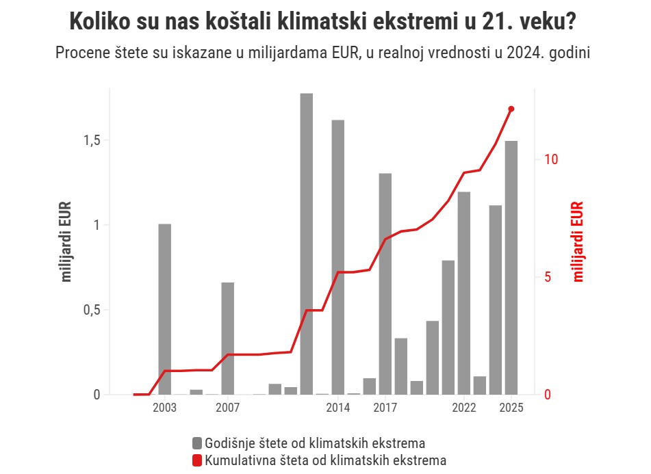 Od početka 21. veka, u Srbiji su klimatski ekstremi napravili štetu od najmanje 10 milijardi evra