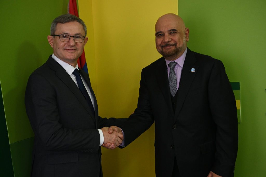 Ministar poljoprivrede, šumarstva i vodoprivrede prof. dr Dragan Glamočić sastao se danas u Ministarstvu sa zamenikom regionalnog predstavnika Organizacije Ujedinjenih nacija za hranu i poljoprivredu (FAO) za Evropu i Centralnu Aziju Nabilom Gangijem.