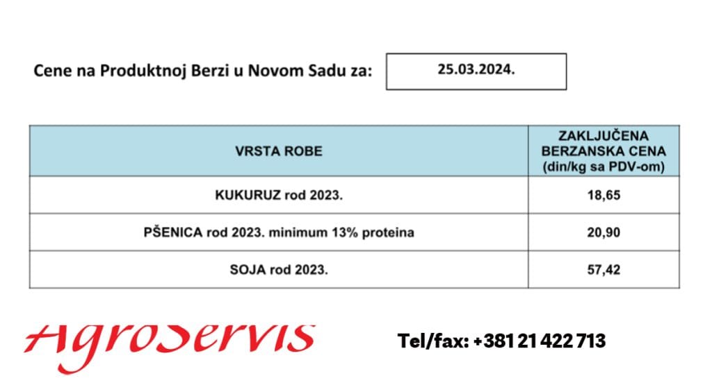 PROMET ROBE NA PRODUKTNOJ BERZI NA DAN 25.3.2024..
