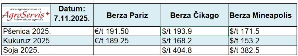 Pregled cena žitarica i uljarica u svetu – 10.11.2025. – Cene na svetskim berzama