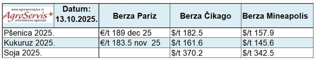 Pregled cena žitarica i uljarica u svetu – 14.10.2025. – Cene na svetskim berzama