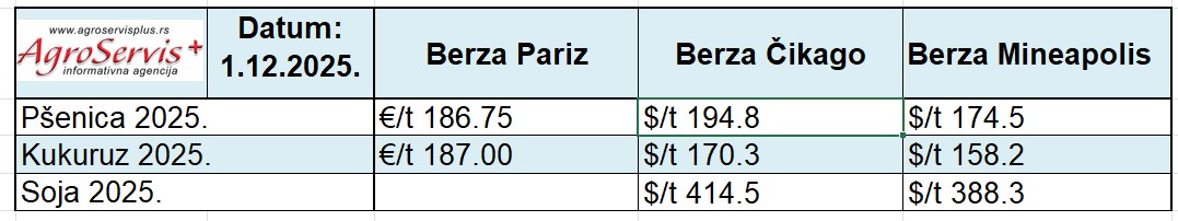 Pregled cena žitarica i uljarica u svetu – 2.12.2025. – Cene na svetskim berzama