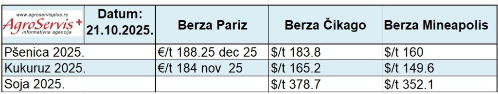 Tržište ostaje u režimu ravnoteže između rekordnih južnoameričkih prinosa, sporadične kineske potražnje i vremenskih rizika u SAD i Evropi. Oktobarske kiše trenutno stabilizuju logistiku, ali političke tenzije i razlike u biodizel politikama i dalje oblikuju cenu soje, kukuruza i pšenice uoči završnice meseca.