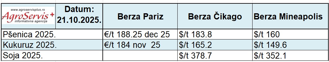 Tržište ostaje u režimu ravnoteže između rekordnih južnoameričkih prinosa, sporadične kineske potražnje i vremenskih rizika u SAD i Evropi. Oktobarske kiše trenutno stabilizuju logistiku, ali političke tenzije i razlike u biodizel politikama i dalje oblikuju cenu soje, kukuruza i pšenice uoči završnice meseca.