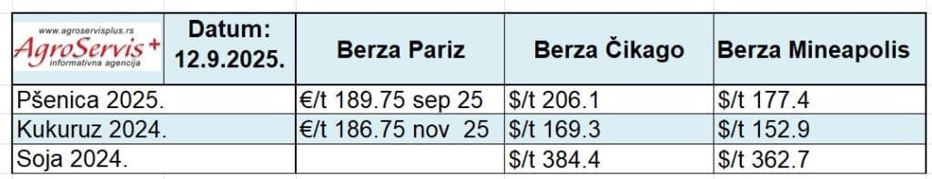 Cene žitarica na svetskim berzama: Pariz, Mineapolis, Čikago