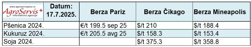 Cene žitarica na svetskim berzama: Pariz, Mineapolis, Čikago
