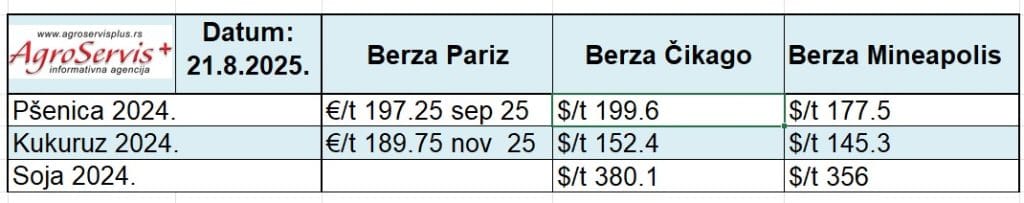 Cene žitarica na svetskim berzama: Pariz, Mineapolis, Čikago