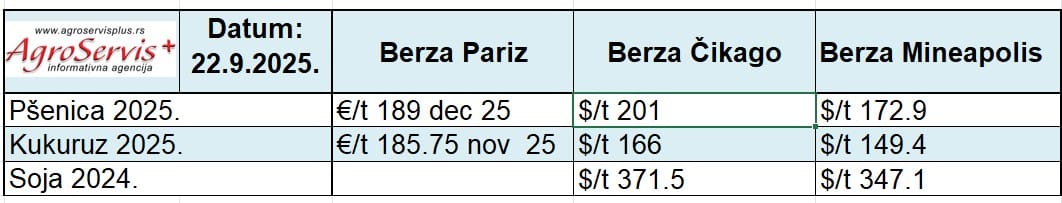 Cene žitarica na svetskim berzama: Pariz, Mineapolis, Čikago