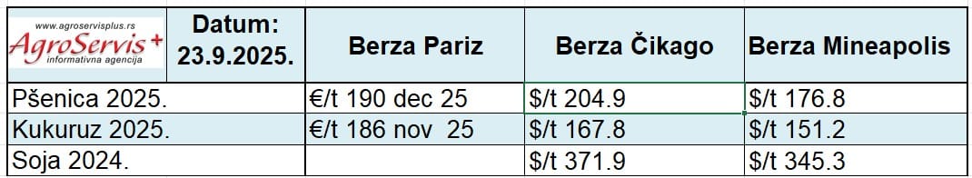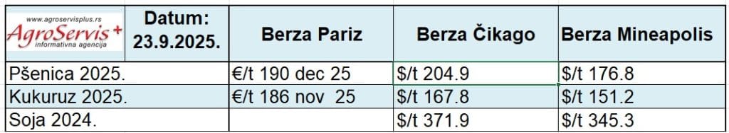 Cene žitarica na svetskim berzama: Pariz, Mineapolis, Čikago