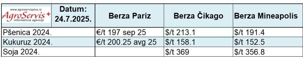 Pregled cena žitarica u svetu – 25.7.2025. – Cene na svetskim berzama