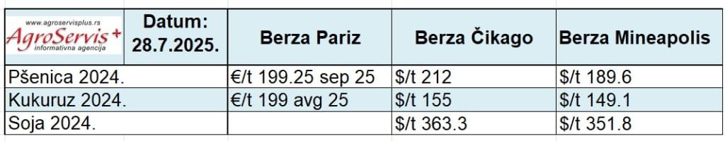 Pregled cena žitarica u svetu – 29.7.2025. – Cene na svetskim berzama