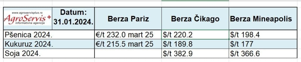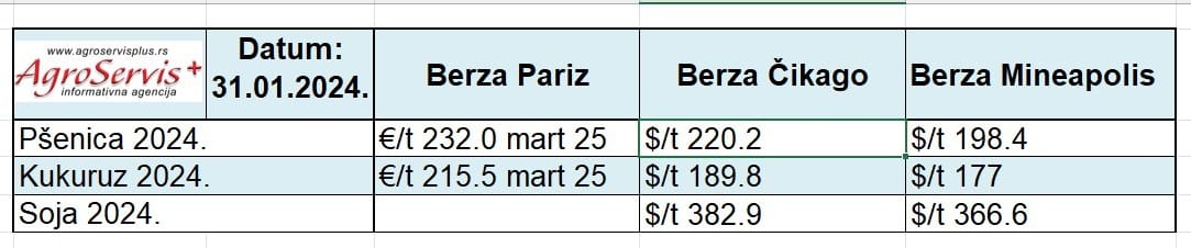 Cene žitarica na svetskim berzama: Pariz, Mineapolis, Čikago