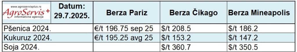 Cene žitarica na svetskim berzama: Pariz, Mineapolis, Čikago
