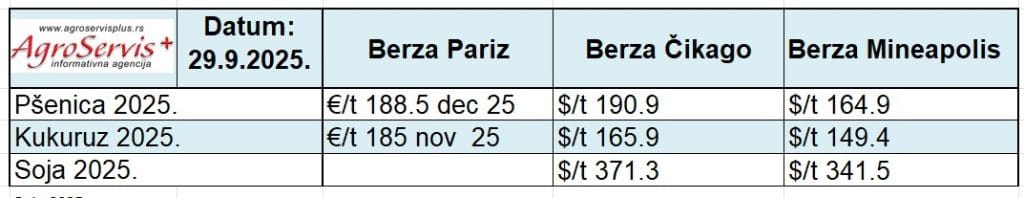 Tržište žitarica – 29. septembar 2025.