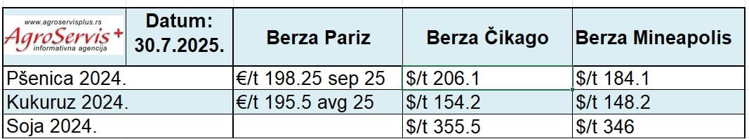 Cene žitarica na svetskim berzama: Pariz, Mineapolis, Čikago