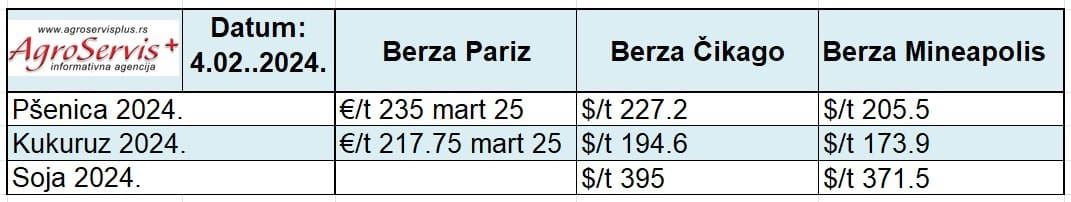 Cene žitarica na svetskim berzama: Pariz, Mineapolis, Čikago