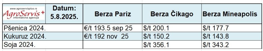 Cene žitarica na svetskim berzama: Pariz, Mineapolis, Čikago