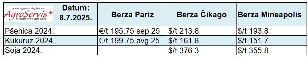 Cene žitarica na svetskim berzama: Pariz, Mineapolis, Čikago
