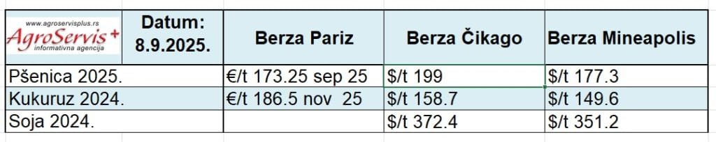 Cene žitarica na svetskim berzama: Pariz, Mineapolis, Čikago