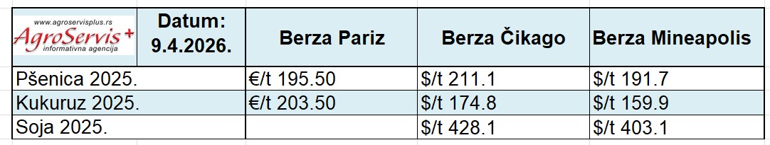 PREGLED GLOBALNOG TRŽIŠTA ŽITARICA I ULJARICA 10.4.2026.