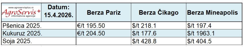 PREGLED GLOBALNOG TRŽIŠTA ŽITARICA I ULJARICA 16.4.2026.