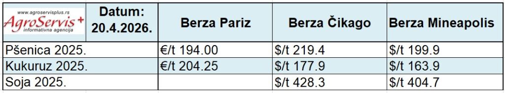 - Francuska: Agencija FranceAgriMer upozorila je da bi površine pod kukuruzom mogle da se smanje za 10% jer farmeri prelaze na kulture koje zahtevaju manje đubriva.