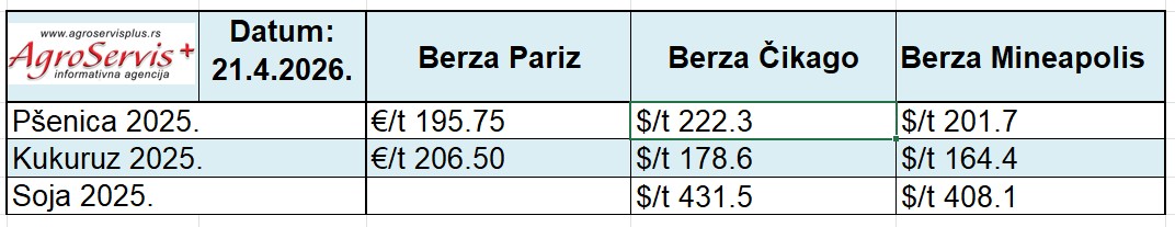 Agencija Safras & Mercado podigla je procenu proizvodnje soje u Brazilu na 178,11 miliona tona. Ukupna ponuda soje za 2026. procenjuje se na 182,82 miliona tona naspram tražnje od 170,22 miliona, što ukazuje na strukturni višak od oko 12,6 miliona tona. Sa druge strane, cene pšenice u Brazilu rastu zbog loših izgleda za domaći rod, koji bi mogao biti najniži od 2020. godine.