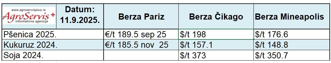 Pregled cena žitarica u svetu – 12.9.2025. – Cene na svetskim berzama