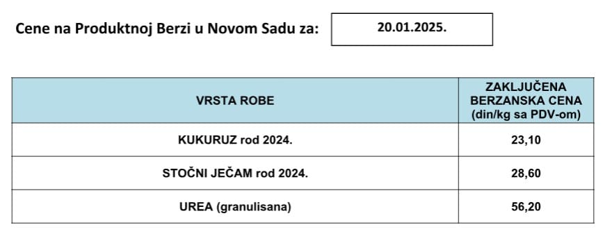 Pregled cena na Produktnoj berzi Novi Sad za 20.8.2025.