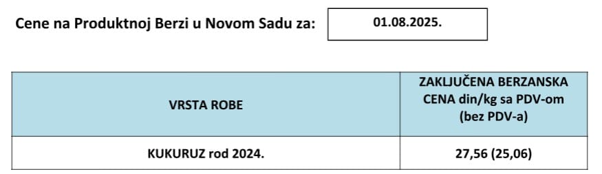 Pregled cena na Produktnoj berzi Novi Sad za 1.8.2025.